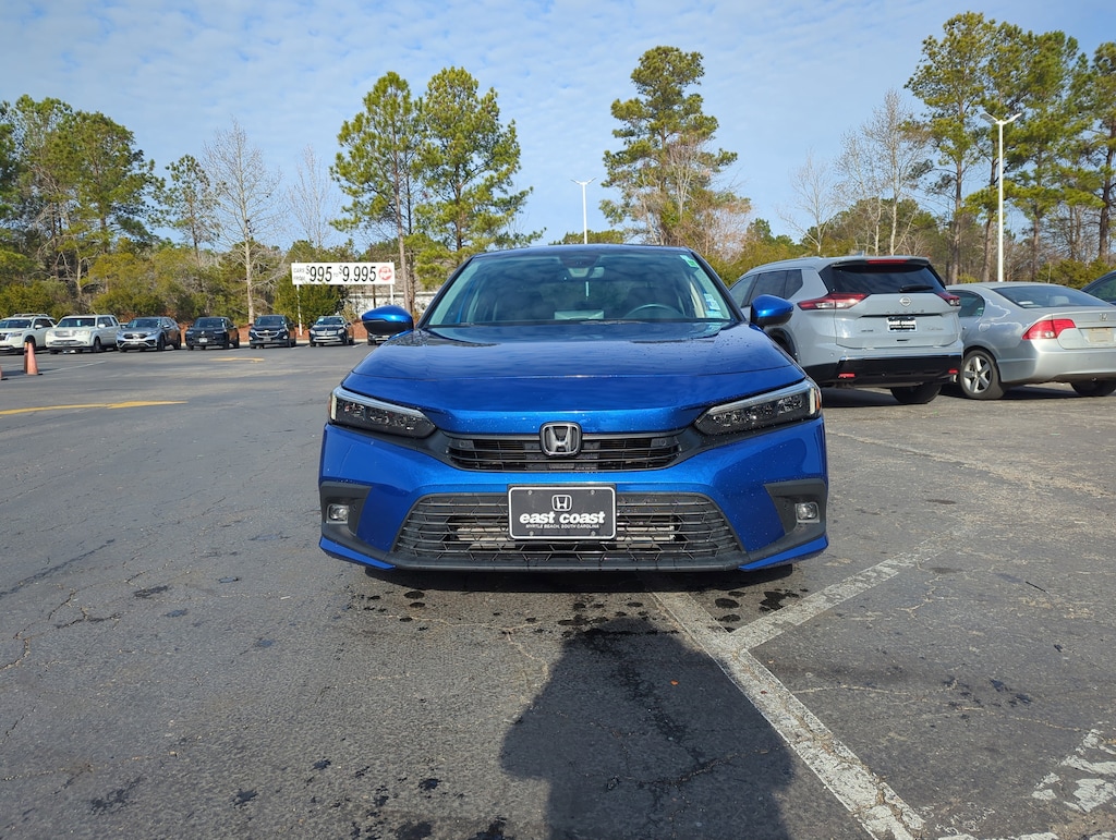 Delivers 38 Highway MPG and 31 City MPG! This Honda Civic Sedan boasts a Intercooled Turbo Premium Unleaded I-4 1.5 L/91 engine powering this Variable transmission. Wireless Phone Connectivity, Wheels: 18" Alloy w/Gloss Shark Gray Inserts, Voice Activated Dual Zone Front Automatic Air Conditioning.